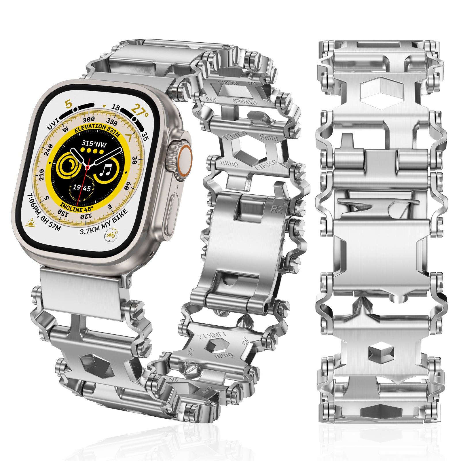 29 in 1 Multitools Stainless Steel Apple Watch Bands - Men’s Rugged Survival Camping Hiking Strap for iWatch Series Ultra/Ultra 2(49mm)