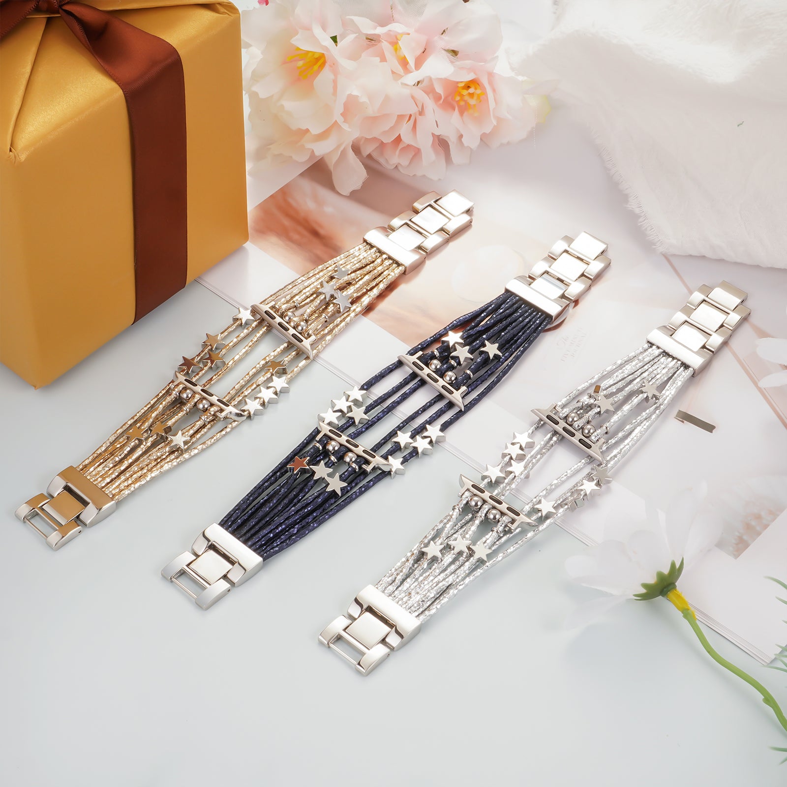 Boho Multilayer Leather Jewelry Wrap Compatible for Apple Watch Series 1-10 SE (38/40-42/44-46/49mm)