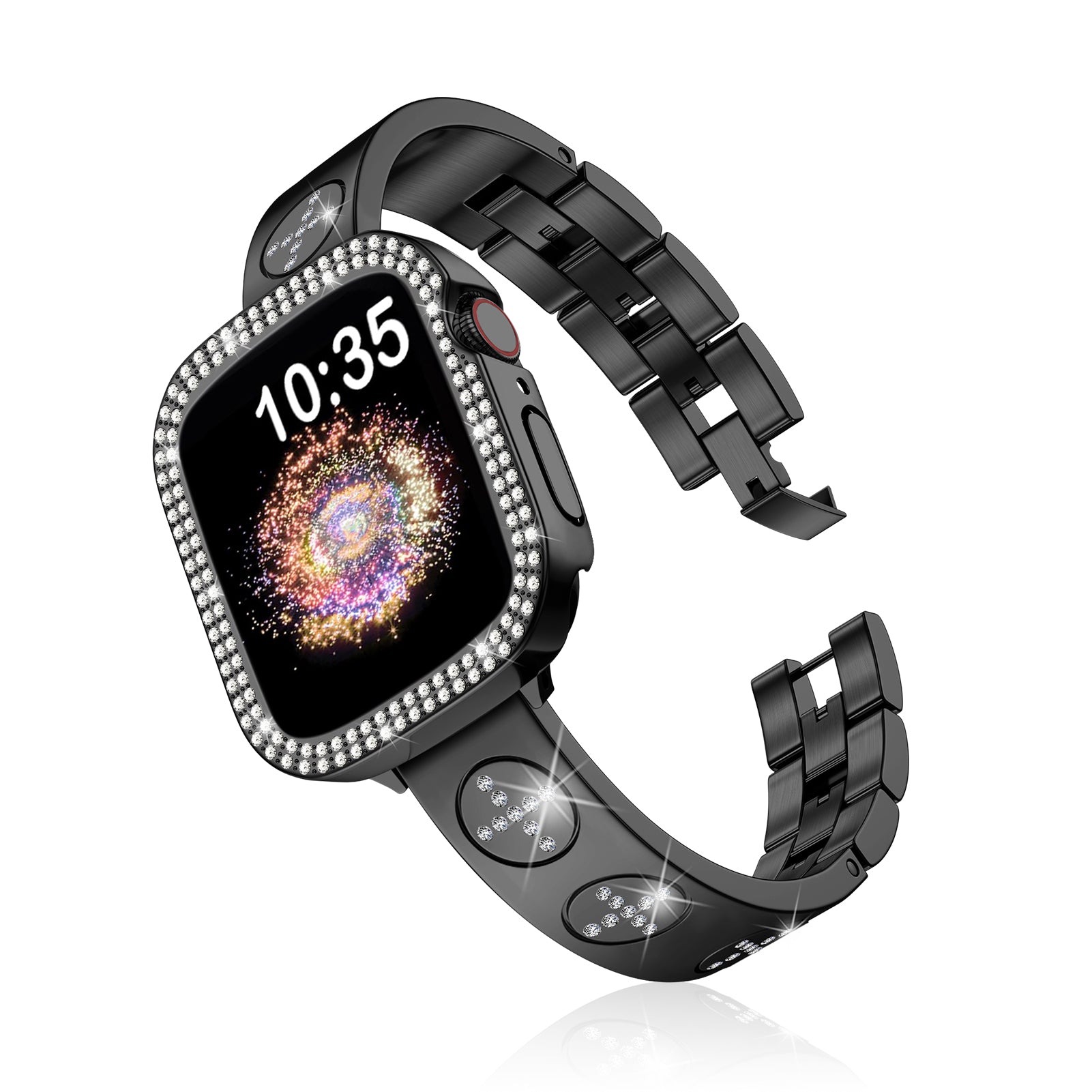 Gold Diamond Stainless Steel Apple Watch Bands for iWatch Series 4-10/SE (40-46mm)