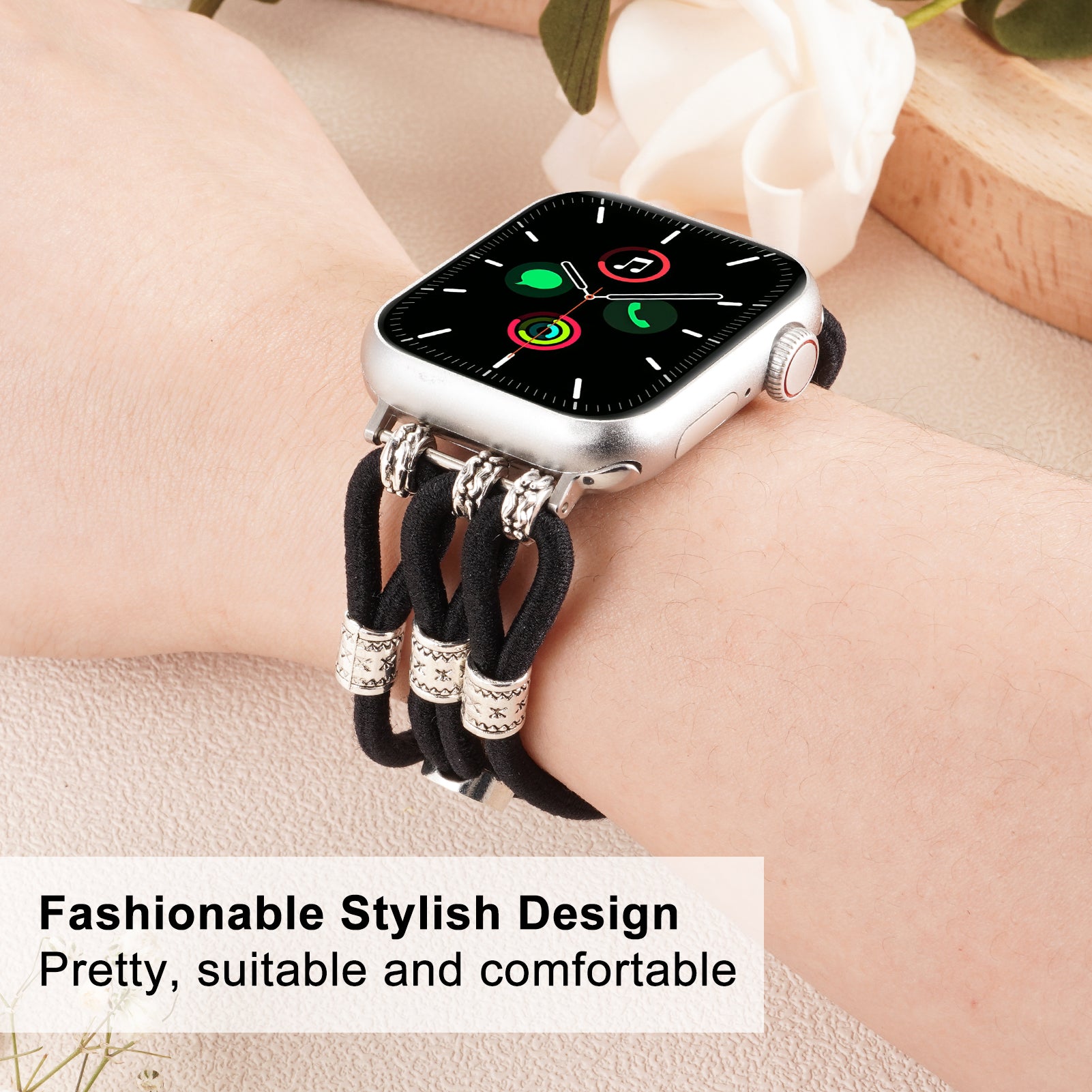 Stretchy Apple Watch Band: Stretchy women’s watch band fits for Apple Watch Series 1-10, SE (38mm/40mm/41mm/42mm). Perfect for 5.7–7.0 inch (145–177mm) wrists. Buckle-free design enables effortless on/off & installation (easier than traditional straps).