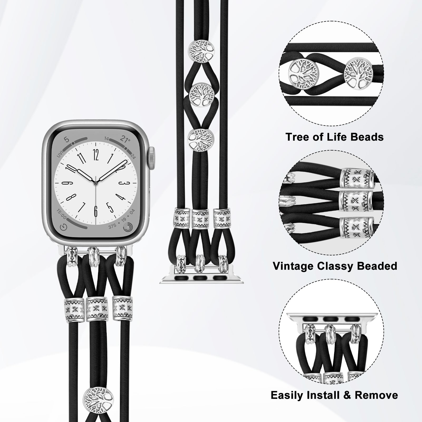 Unique Tree of Life Style: Blends bracelet and watch band seamlessly—stunning on the wrist! Tree of Life beads symbolize rebirth, growth, and strength, making this a cute, unique wrist jewelry piece.